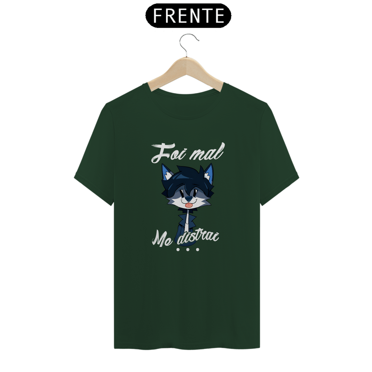Camiseta com personagem distraído e frase sarcástica “Foi mal, me distraí” — visual divertido para o dia a dia.