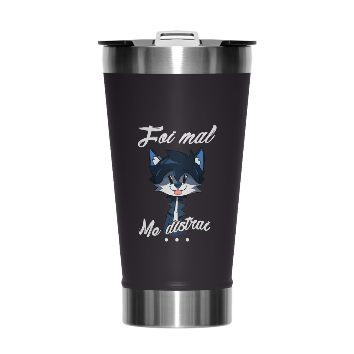 Versão escura do tumbler “Foi mal, me distraí” — mesma capacidade e resistência, look mais sóbrio.