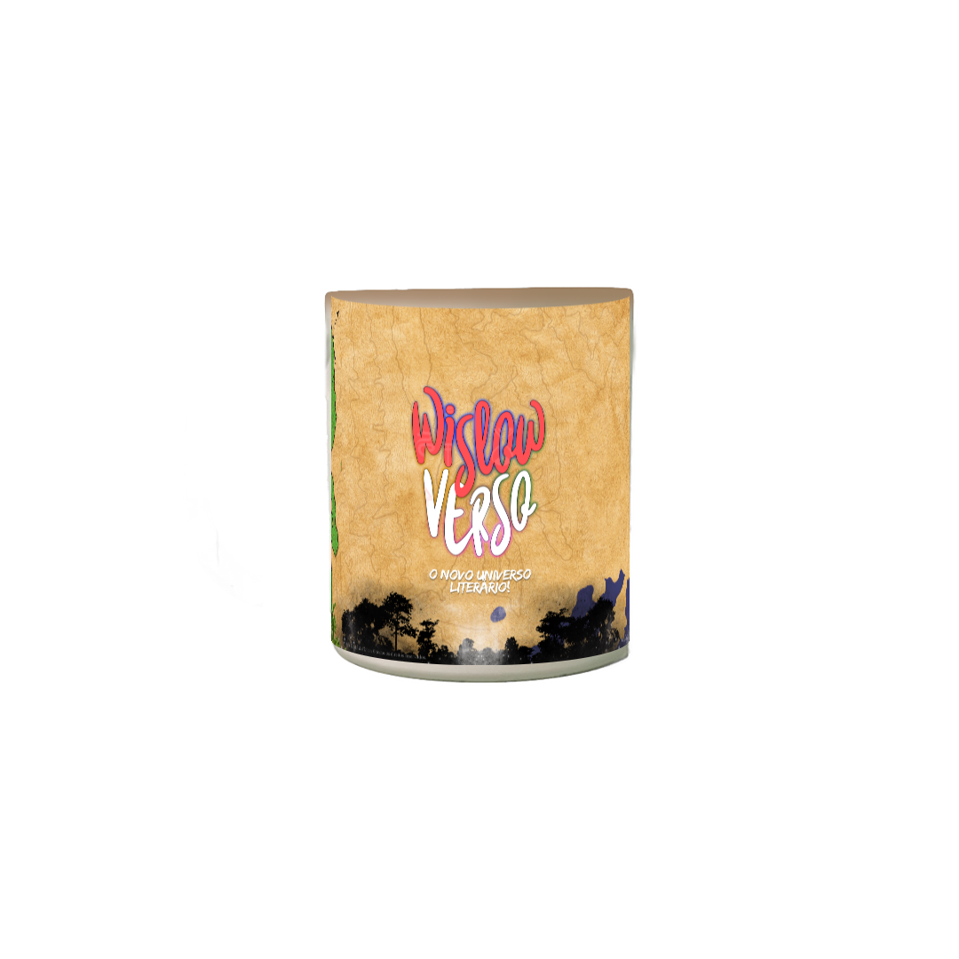 Caneca colecionável com mapa ilustrado em estilo pergaminho vintage: arte full-wrap (envolve toda a caneca) que mostra relevo, rios e marcações épicas do Wislowverso, ideal para leitores que gostam de lore. Caneca com personalidade: o logo colorido Wislowverso aparece em wrap com fundo que remete a céu ao entardecer e silhuetas de savana — combinação que une o tom literário e o clima da saga. Boa para uso diário, como peça de merchandising em lançamentos de livros, brindes para leitores ou itens de estande em eventos. Impressão por sublimação garante cores vivas e boa definição.